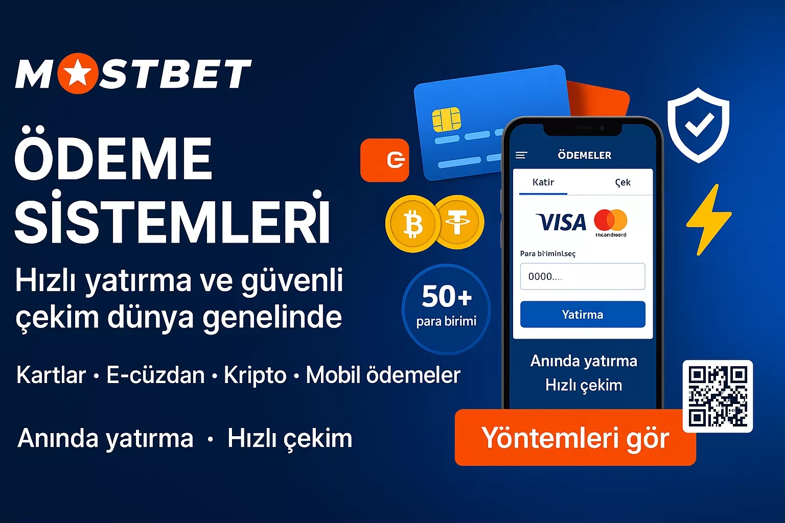 Platform 50+ para birimini destekler. Minimum yatırım ≈ 10 USD (veya karşılığı). Yatırma anında, çekim ise yöntem, tutar ve güvenlik kontrolüne bağlı olarak birkaç dakikadan 1–3 güne kadar sürer. Çoğu işlemde Mostbet tarafında komisyon 0% (ödeme sağlayıcısı/ağ ücretleri olabilir).
